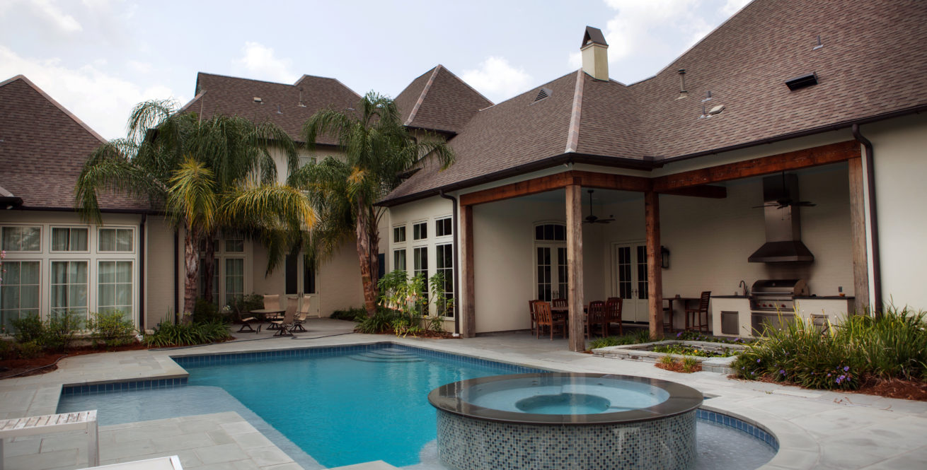 This beautiful custom-built Mediterranean style home is located in the Country Club of Louisiana. The interior design is a transitional mix between modern contemporary and the rustic-inspired architectural designs of A. Hays Town. The home encompasses 6300 square feet of living space and 8000 square feet total, with four bedrooms and four-and-a-half bathrooms. Interiorly, the home features a spacious kitchen with vaulted beam lined ceilings, a dedicated office, and two game rooms. Additionally, the spacious master bedroom suite features his and her entrances to the award-winning master bathroom. Stepping outside you encounter a backyard oasis that includes a pool, koi pond, outdoor grilling and living space with slated surface throughout.