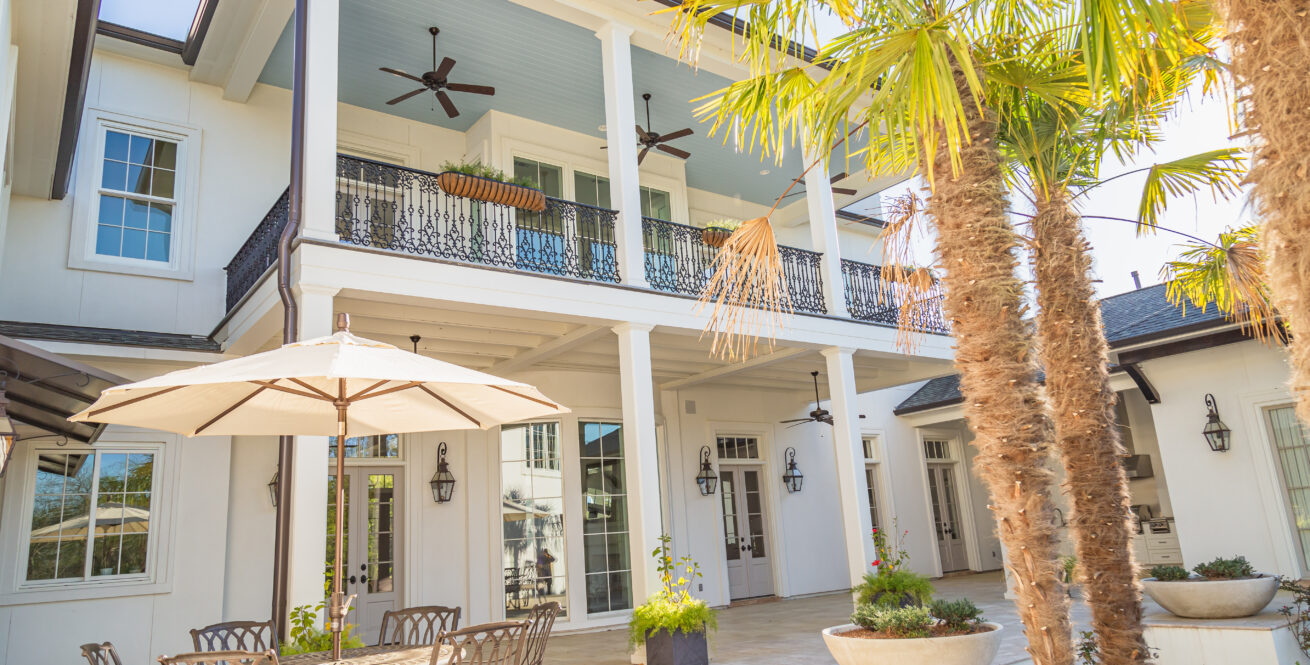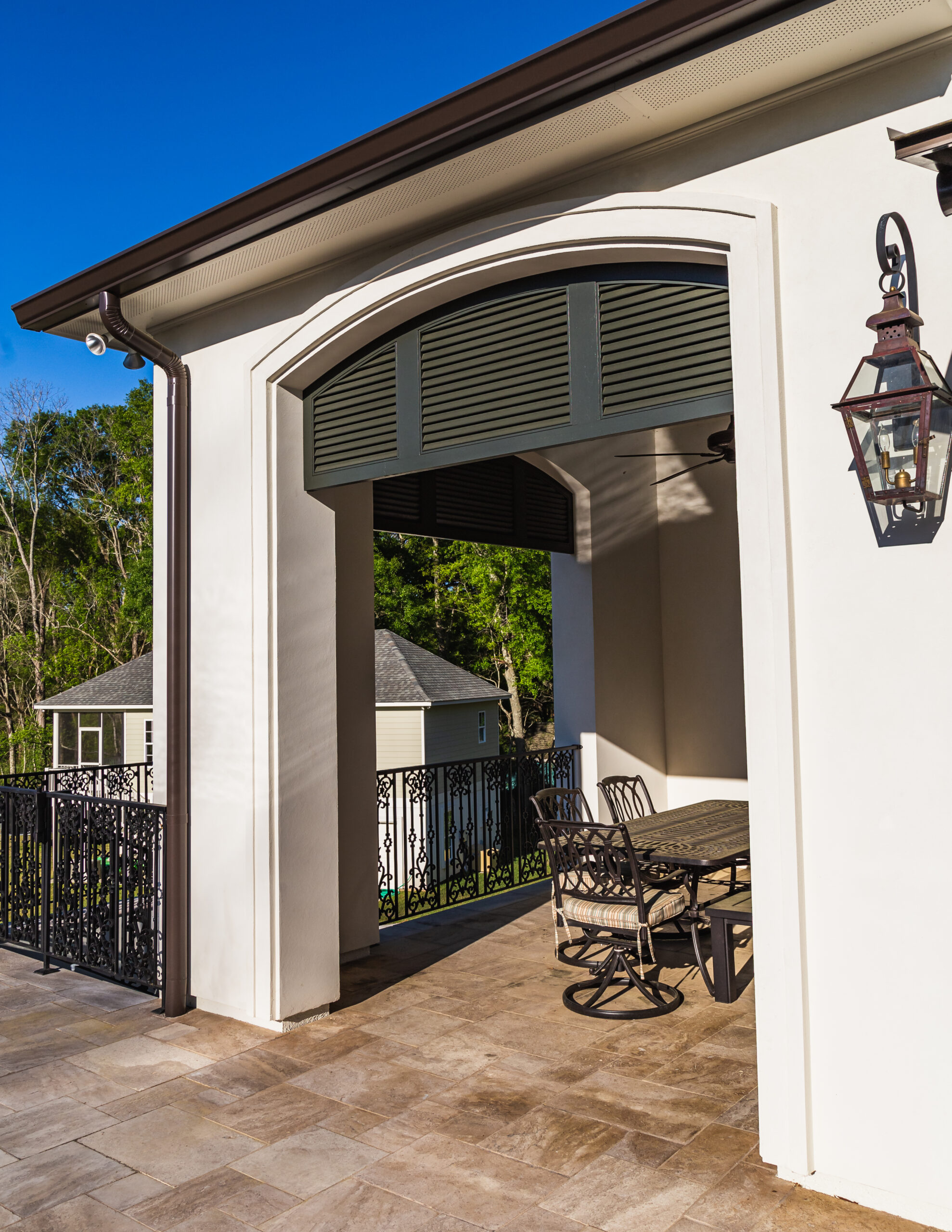 - Custom wrought-iron lined balcony