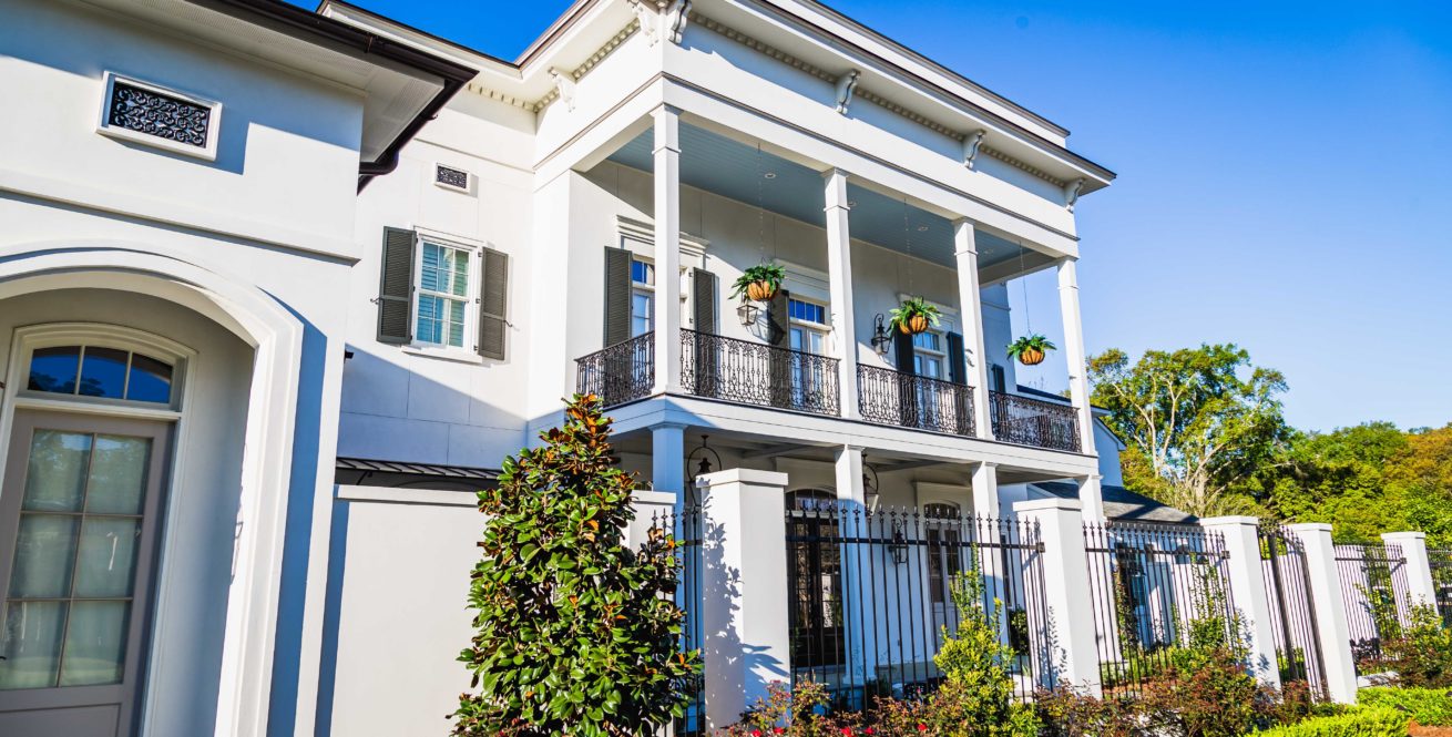 This magnificent Greek Revival (New Orleans style) custom home features five bedrooms, 5 ½ bathrooms, and is located in the very scenic and exclusive Highland Lakes neighborhood off Highland Road. In addition to the main house, a beautiful one-bedroom guest house with a full kitchen and a custom bunk bed loft is located in the rear portion of the lot. The home is situated on a bluff overlooking an expansive multiacre lot with a private lake buffered with woods in the rear to give this home exclusive and unparalleled privacy.Â
